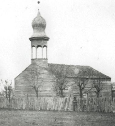 The original log church with an “onion steeple belfry” served the congregation until 1879, when the current First Protestant Church building was erected of stone. At this church today, one can see the chalice presented by Prince Carl during the first mass held outdoors, as well as the original bells that hung in the onion belfry—which called the people to worship and the children to school.