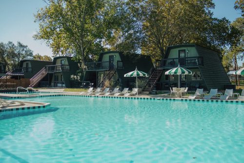 The 23-cabin, 48-room property, shaded by mature cypress trees along the riverbank, was acquired by French Cowboys in February 2025 and has since undergone an artful property-wide transformation. The project focused on refreshing the exterior and interior finishes of each unit while modernizing and expanding amenities to support year-round stays.