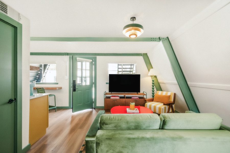 Petit Cowboy offers six room categories accommodating between two and six guests. Select layouts include breakfast bars, breakfast nooks and/or living rooms. Depending on configuration, rooms feature king, queen or twin beds, with pull-out sofas in select units. New standard amenities include smart locks, Roku TVs, Keurig Mini coffee makers, microwaves and Beekman 1802 bath products. Designated dog-friendly cabins are available for a $40 nightly fee.