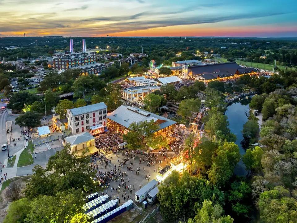 A drone captures an overhead shot of the 2024 annual Wurstfest celebrations hosted in New Braunfels, Texas - Courtesy of FlyBy Photography