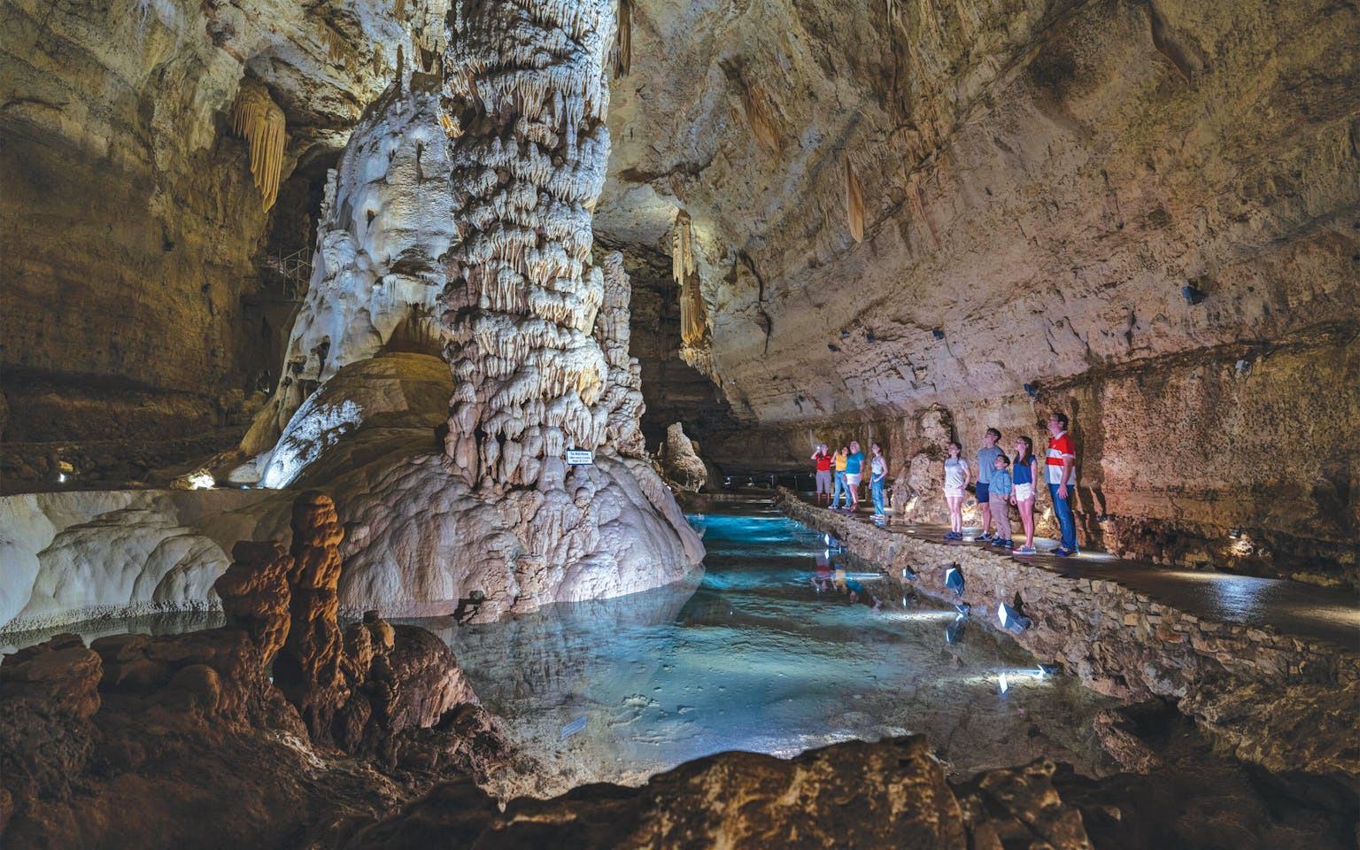 About fifteen miles west of New Braunfels, Natural Bridge Caverns is a family-owned network of caves on a 759-acre stretch of land that’s a limestone-and-oak-tree embodiment of the Hill Country. It’s easy to get past the inevitable theme park vibe upon arrival when you realize that what is essentially on offer here is an almost inconceivable opportunity to witness eons of Texas geological history, past (fossilized sea creatures from the Cretaceous period) and present (drops of slightly acidic water passing through layers of porous rock and onto your head). Both of the cavern tours are magnificent, but if there’s time for only one, I’d suggest the Discovery Tour, which focuses on what was once called the North Cavern, discovered in 1960. A narrow, twisty, low-clearance passageway winds its way down about 180 feet, past aquamarine pools and delightfully strange formations that look like drippy sandcastles, ornate chandeliers, sea urchins, and fried eggs. There’s even a mountain of guano from long-gone bats (a sample was carbon-dated at 15,000 years old).